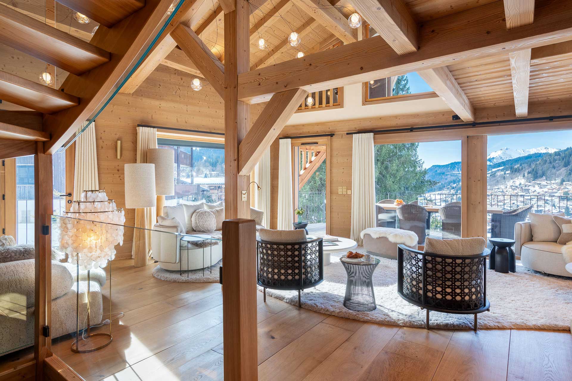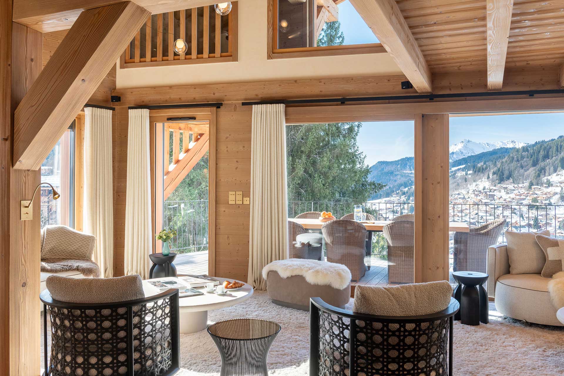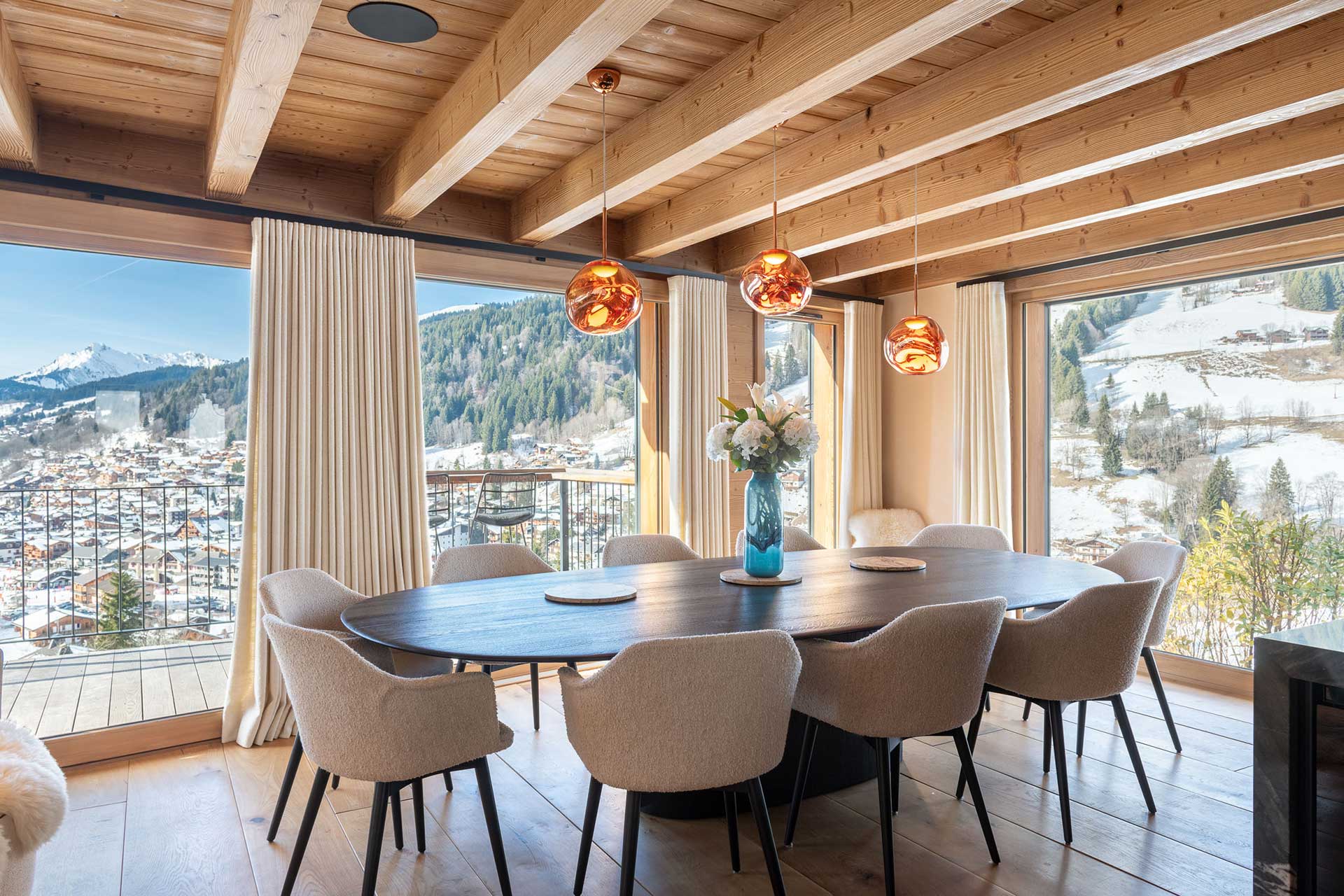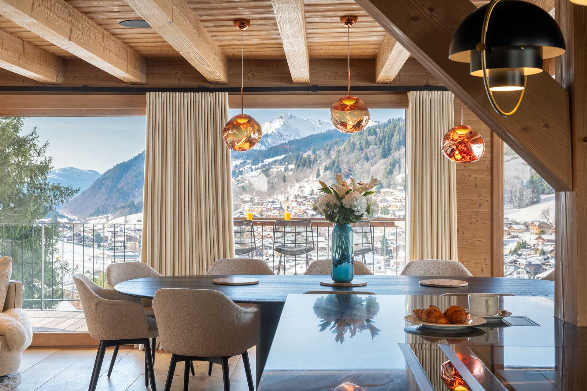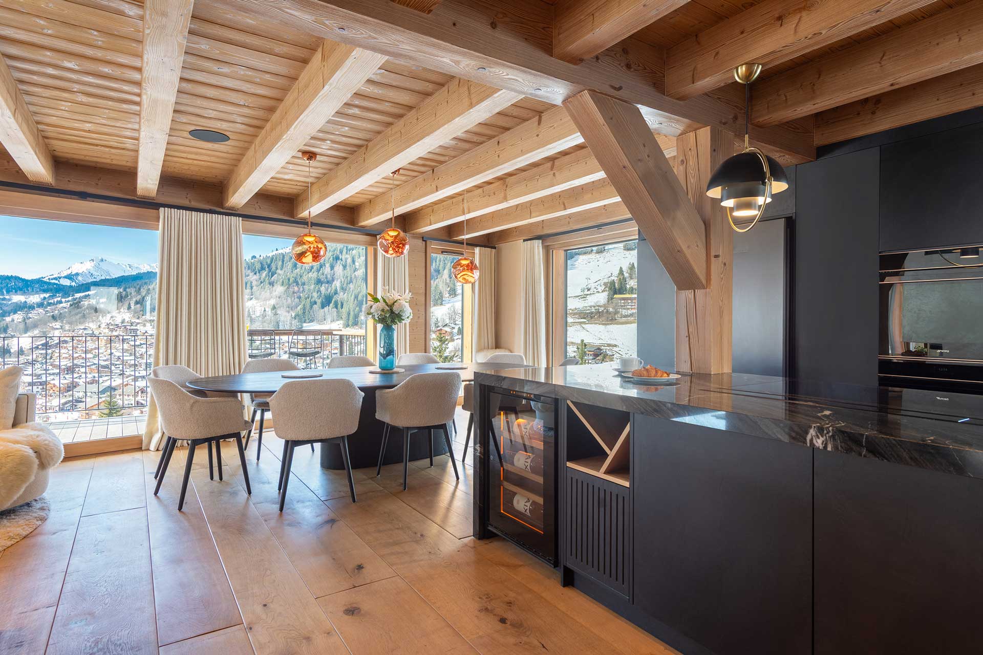 The kitchen is as well appointed as you would expect in a chalet of this quality – all the appliances are of a high standard so if you do choose to self cater you’ll enjoy cooking here. A private chef would also be at home in this space and that would be a truly indulgent way to enjoy time in this property. Another nice feature is that you have both indoor and outdoor dining options on this level – with a large custom oak table set on the balcony also being easily accessible when the weather allows. Wherever you sit you’ll be able to enjoy incredible views over the village of Les Gets, the slopes of both Chavannes and Mont Cherry, and the valley beyond. The aspect is westerly which is ideal for evening sunlight and magical Alpine sunsets.