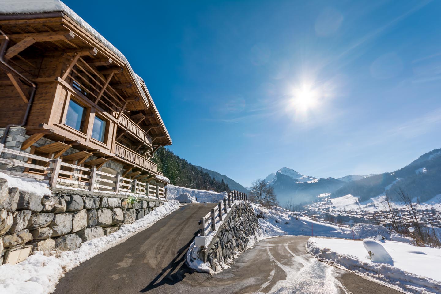 Chalet M has one of the most enviable locations in Morzine — sitting high on the sunny side of the town, with spectacular panoramic views across the resort to the slopes of Pleney and Nyon beyond.