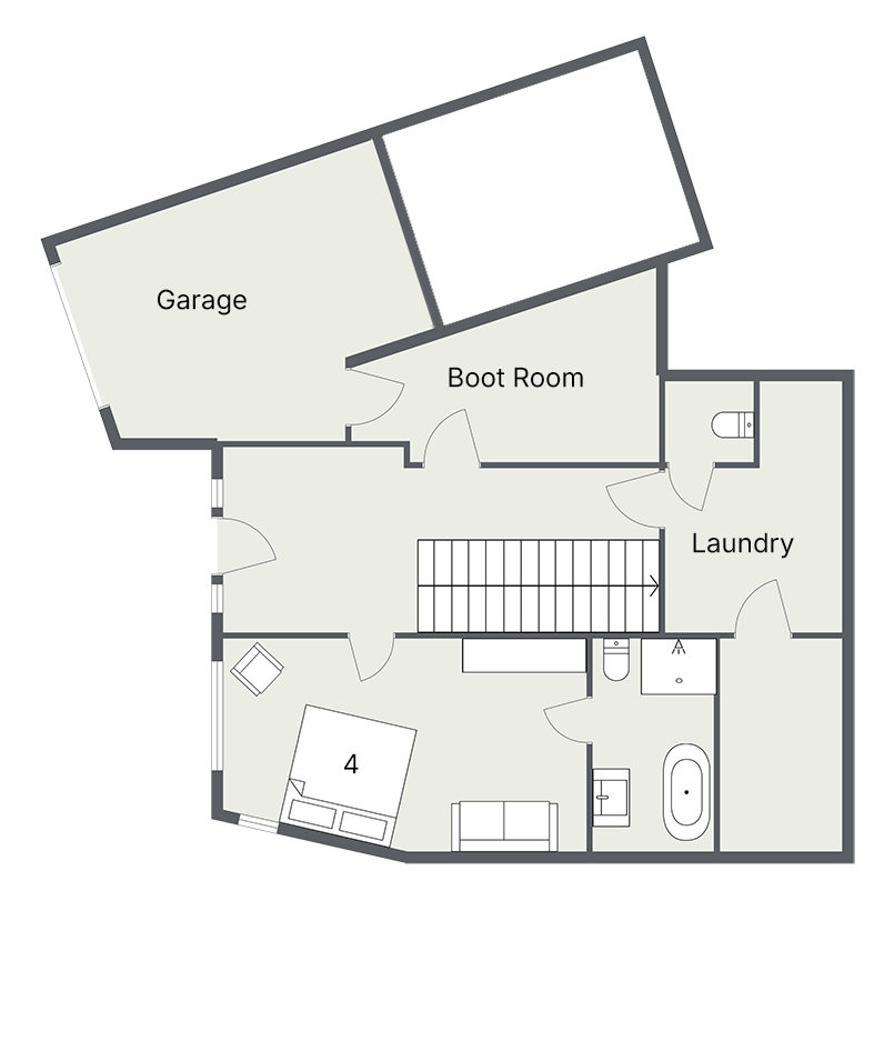 - Bedroom 4 – Double/twin beds, en suite with bath and shower